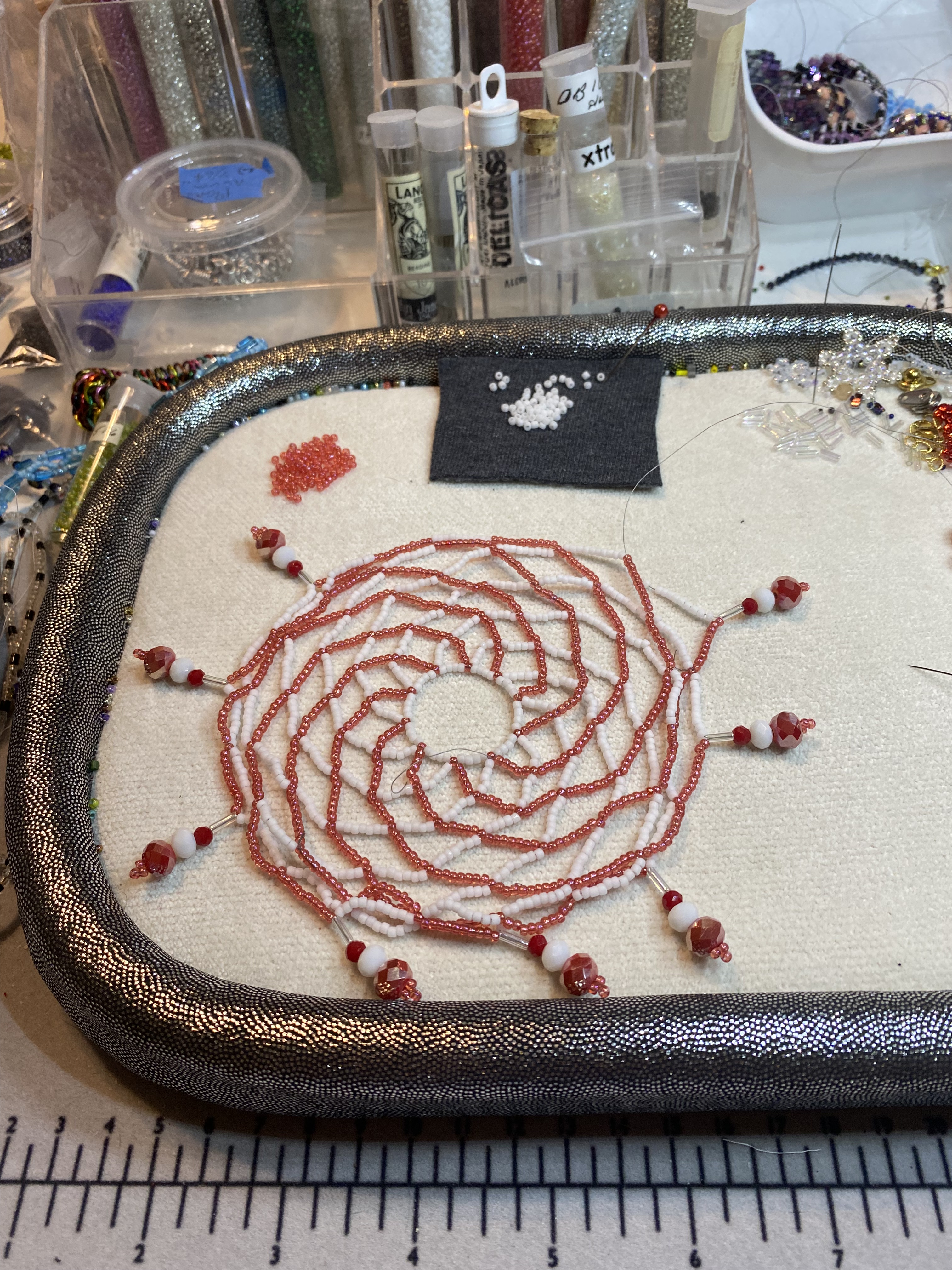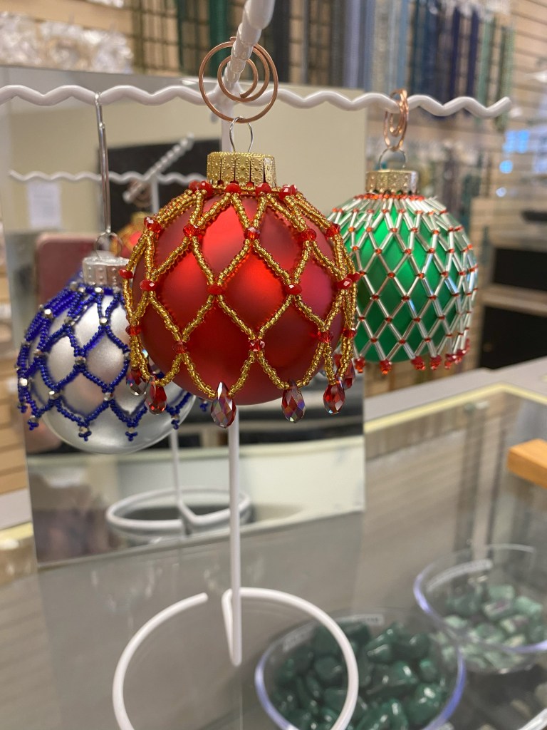 What to bring: 11/0 seed beads, other beads you want to incorporate, needle and thread. We will provide the glass ornaments. You can also buy a kit for $5.