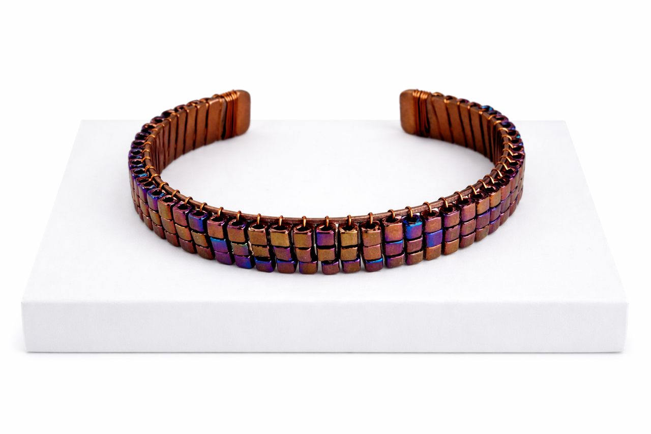 Students will create a copper cuff in this two-hour, hands-on jewelry class. Using a flat copper blank, you will learn basic hammering and forming techniques to shape the metal into a comfortable cuff. Beads will be added using simple wire-wrapping methods to personalize each piece. No prior experience required, and all tools and materials are included.