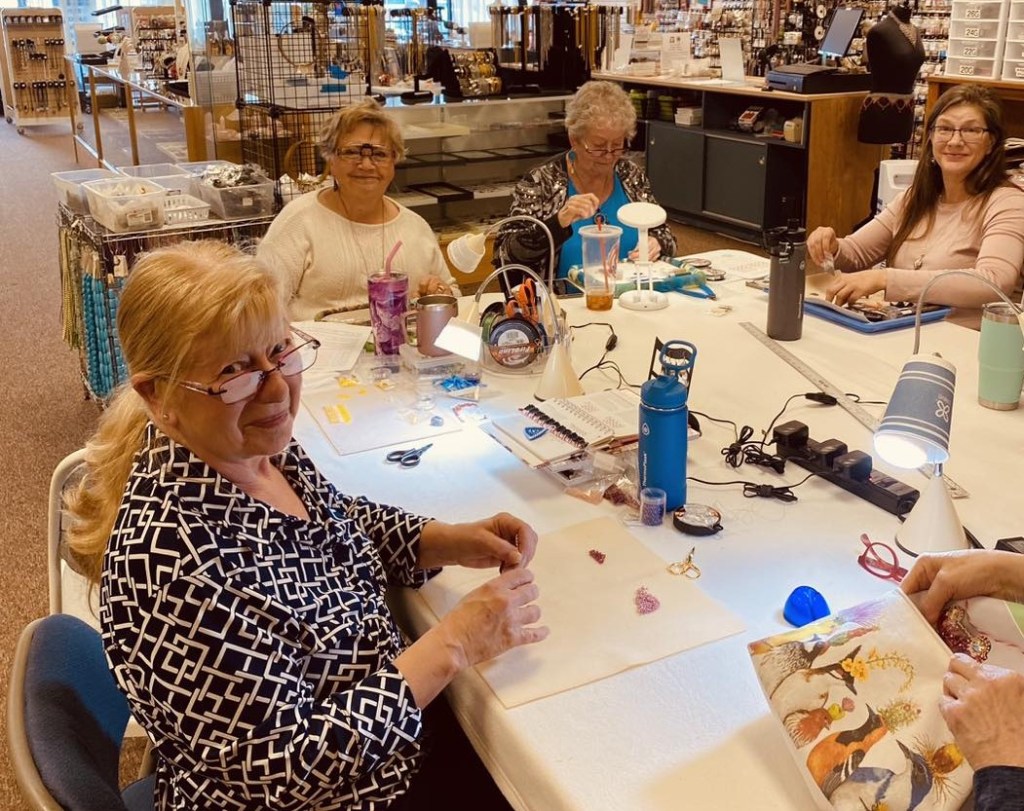 Wednesday afternoons from 1-4 pm is Open Beading for anyone who wishes to work on their own project (i.e. wire, Kumi, beading, etc.) here at our beading table. This allows us to help you with any questions you have. We can also offer follow-ups about a class project. This is a free service unlike a scheduled class where we charge a fee.