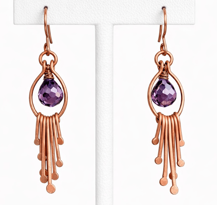 Dive into the art of wire wrapped jewelry in this two-hour, hands-on class led by Albina Manning. You’ll design and craft a pair of elegant Waterfall Earrings featuring cascading copper wires and sparkling Swarovski crystals. This project blends wire shaping, heat work, and gemstone setting — perfect for students ready to explore torch techniques in a creative, supportive environment.